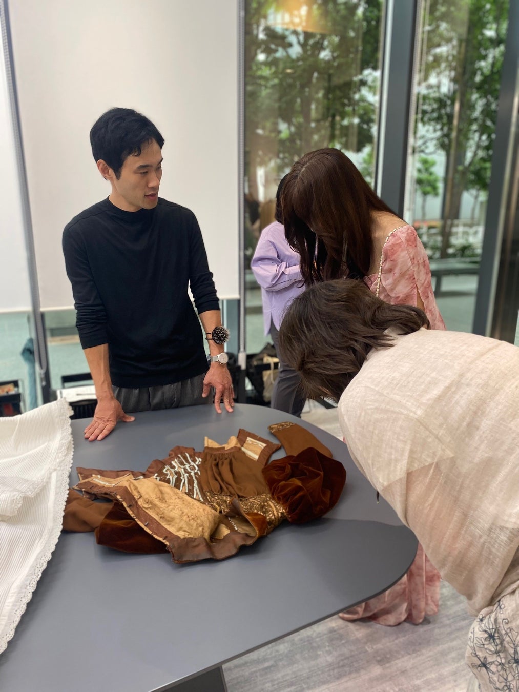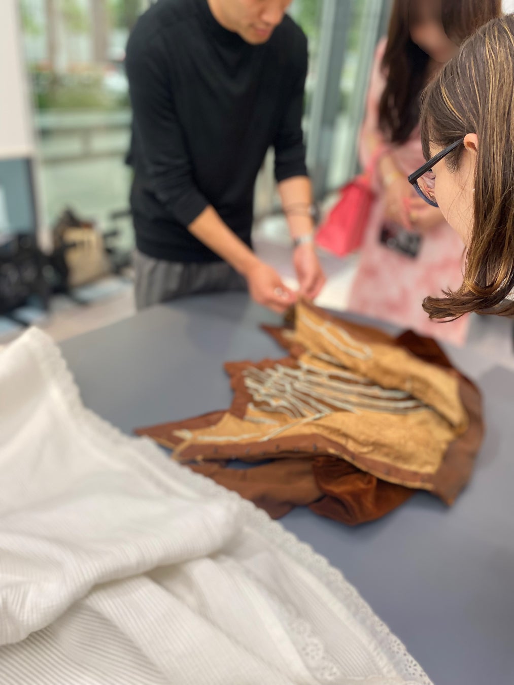 美術館などで展示されている歴史的コレクションが、こんなにも間近に見ることができ、直接触れることもできる機会は少ないため、参加者の皆さんも時間の限りドレスの造形を見て、優しく触れて、その美しさを噛みしめてくださっているようでした。