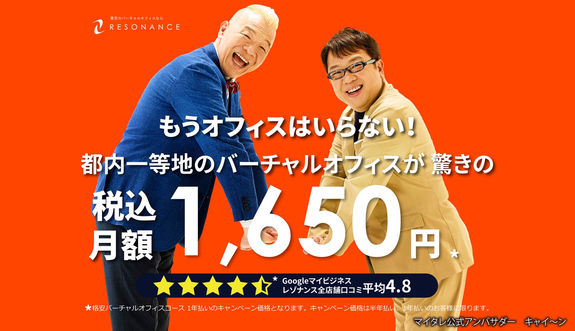 | 対象条件 | すでにレゾナンスのバーチャルオフィス(※)を1店舗以上ご契約中の会員様 |