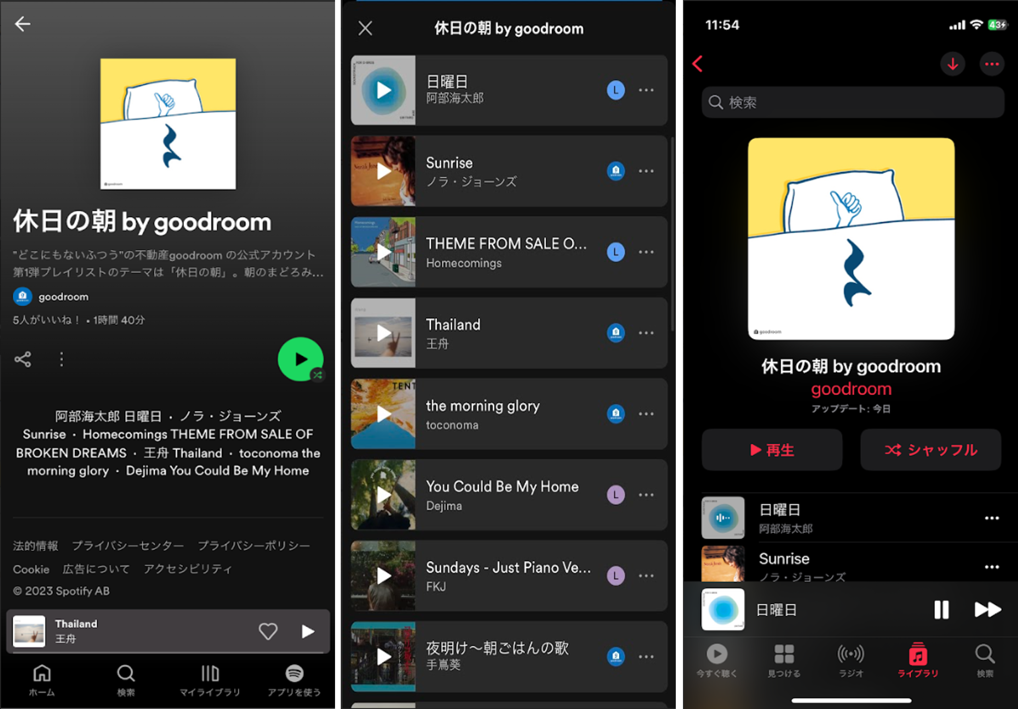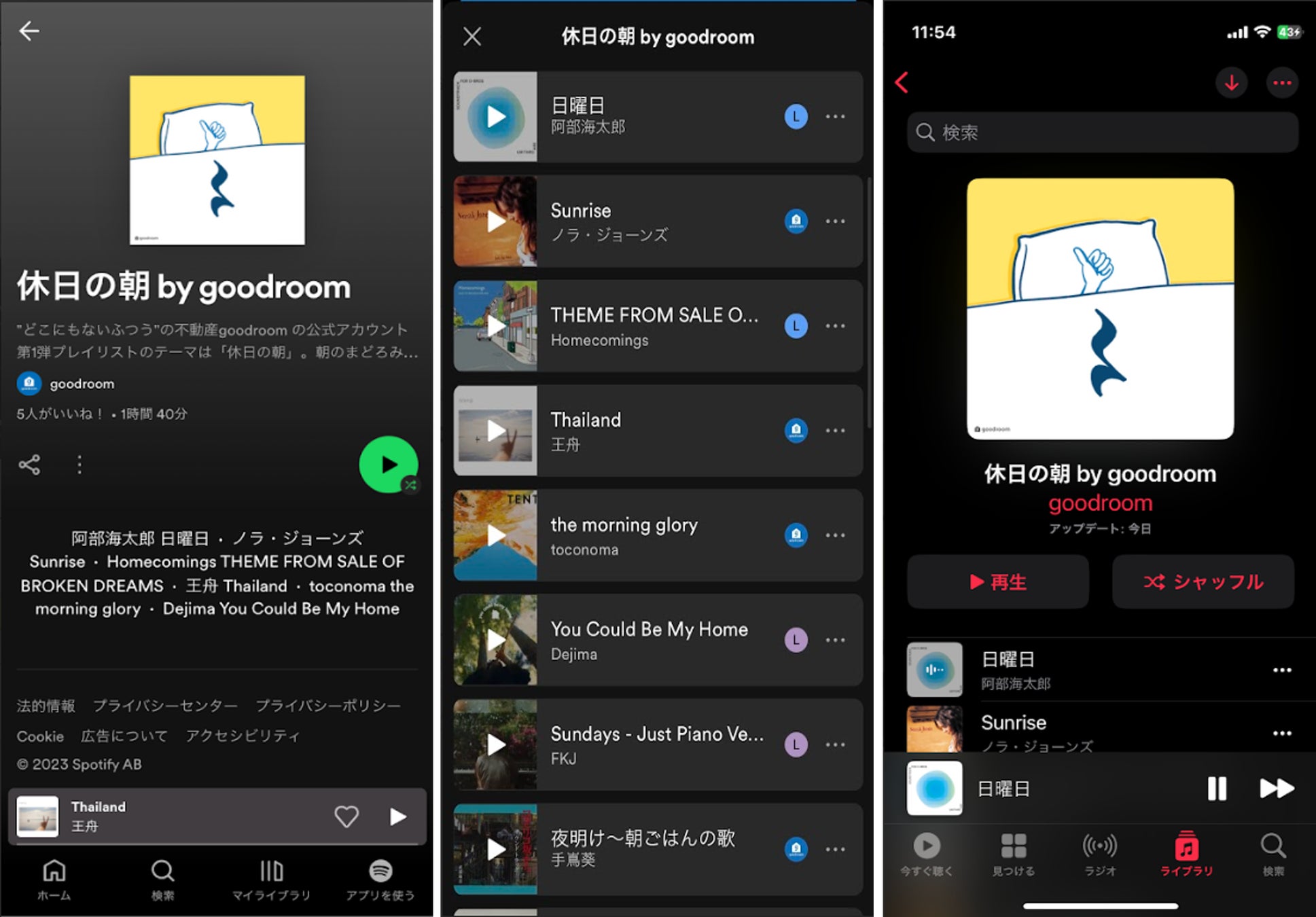 ・視聴方法 :お使いのSpotifyまたはApple Musicで「休日の朝by goodroom」で検索ください