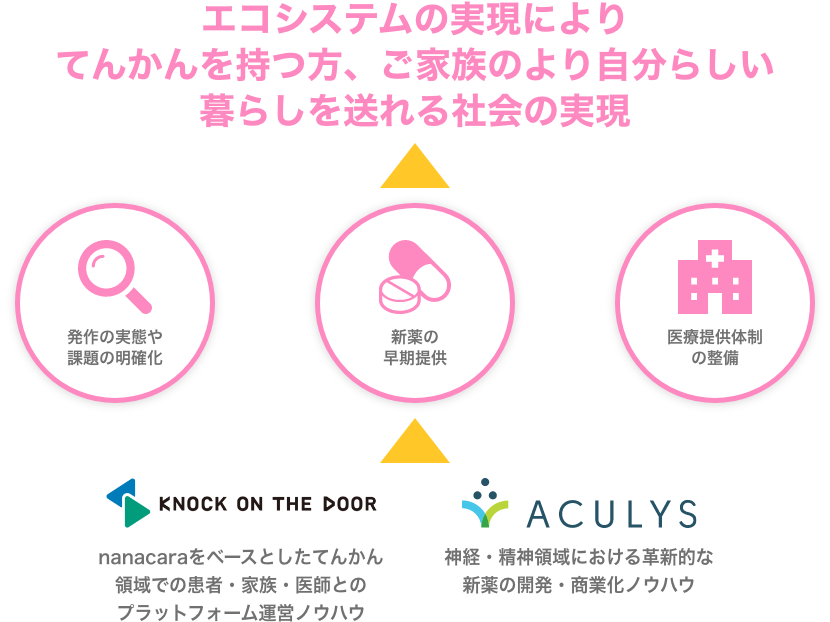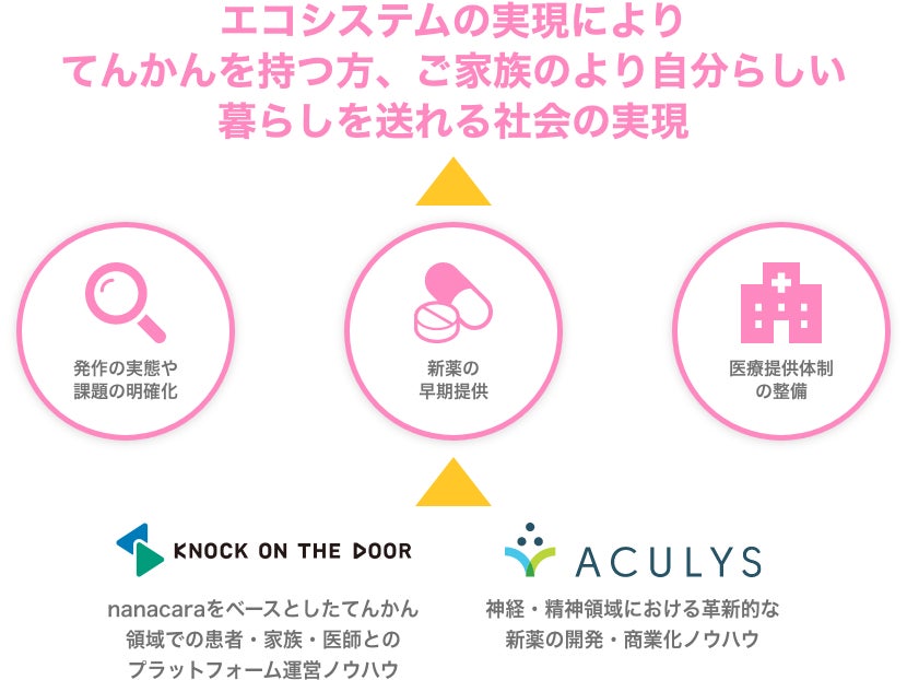 患者さんやご家族、医師と共に創る、てんかん*診療の支援プラットフォーム「nanacara(ナナカラ)」を運営するノックオンザドア株式会社(本社:東京都新宿区、代表取締役:林 泰臣、以下ノックオンザドア)は、てんかん発作に関する社会課題解決の推進を目指し、神経・精神疾患領域における革新的な新薬の開発と商業化を推進するアキュリスファーマ株式会社(本社:東京都港区、代表取締役社長兼CEO:綱場 一成、以下アキュリスファーマ)とてんかん領域における包括的な協業について合意しました。