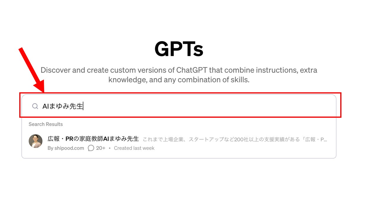 4.GPT Storeの検索窓で 「AIまゆみ先生」と検索することも可能