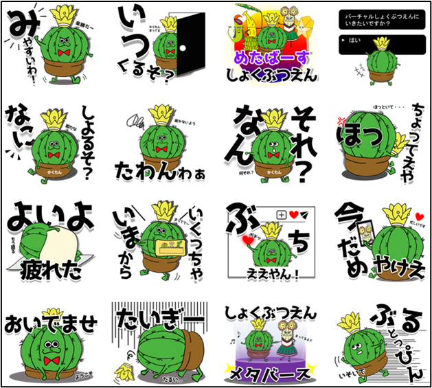 【サボテンラボ】の公開を記念して、“サボテン”をテーマにした宇部市緑と花と彫刻の博物館「ときわミュージアム」の人気オリジナルキャラクター『カクタン』のLINEスタンプをリリースいたしました。全部で16種類。LINEポイントで購入することが可能です。