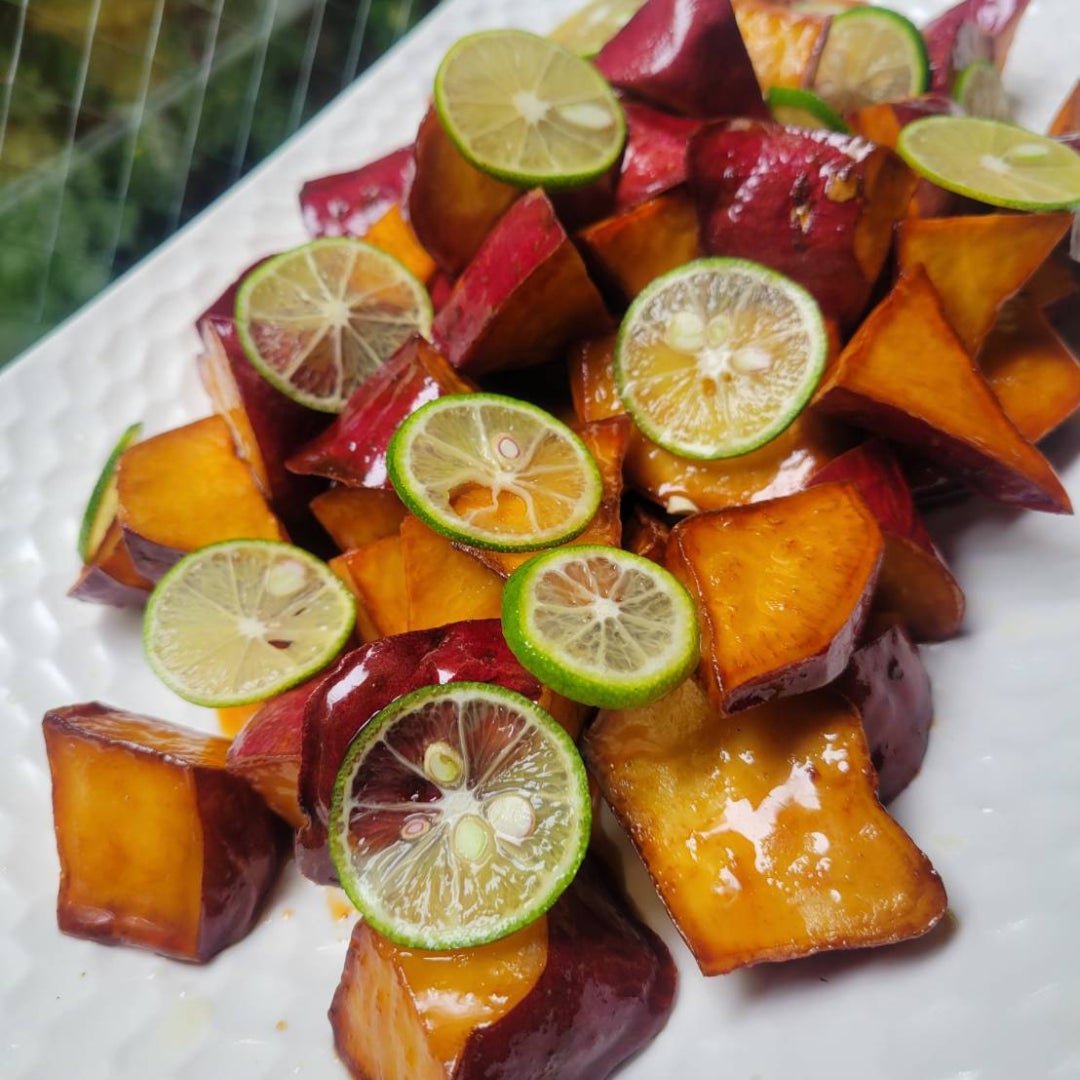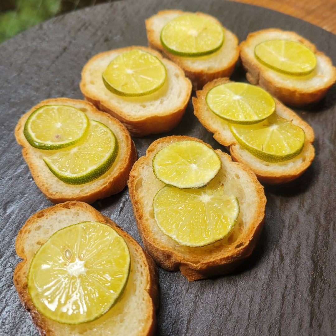 すだちトースト、すだちと阿波尾鶏のハーブロースト、すだち大学芋、ワカメのすだちぱっちょ