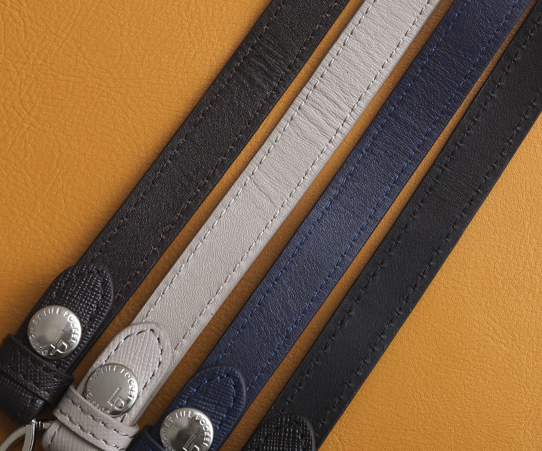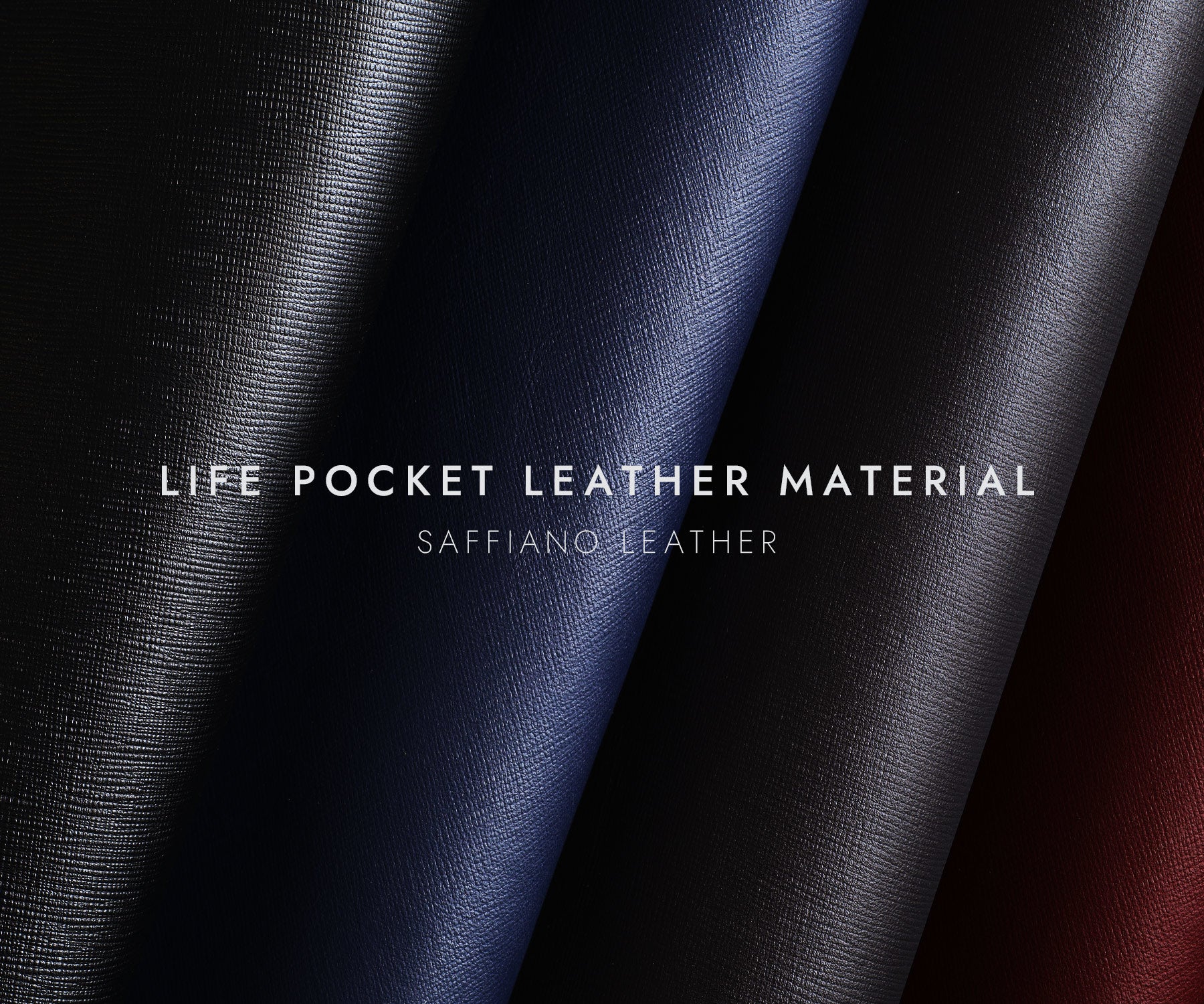 サフィアーノレザーの正式名称は「サフィアノメタルオロ」といい、牛革に型押し加工が施されたものを指します。LIFE POCKET製品のサフィアーノレザーは丈夫で軽く、キズや汚れがつきにくいことが特徴です。