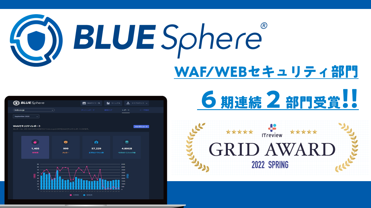 BLUE Sphere(ブルー スフィア)を提供する株式会社アイロバ(代表取締役:小林 直樹、以下「アイロバ」)は、2022年4月、アイティクラウド株式会社(本社:東京都港区、代表取締役社長 兼 CEO:黒野 源太)が発表した、掲載された製品レビュー(口コミ)をもとに選定され顧客満足度の高い製品に送られる「ITreview Grid Award 2022 Spring」において Webセキュリティ部門 と WAF部門 の「 Leader 」を受賞しましたのでお知らせいたします。