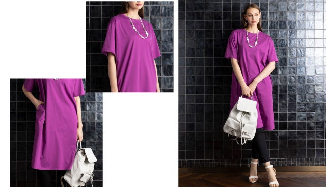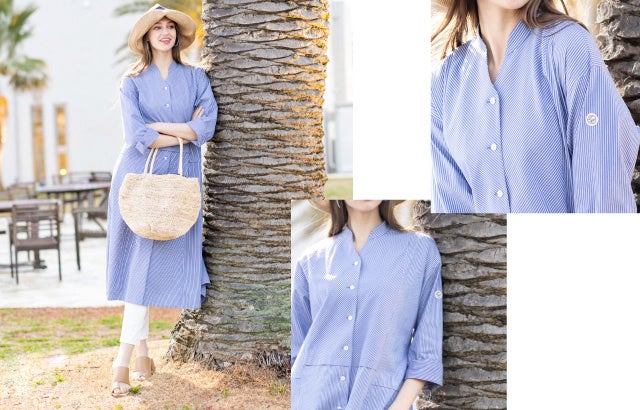 今シーズンの一押しアイテムは、ストレッチの効いた綿混サッカー素材のドレス。