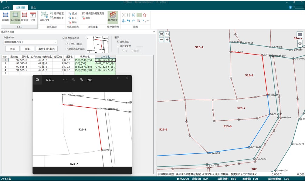 街区境界調査票の作成で、所在図の作成方法の改善と街区境界点の編集に対応。