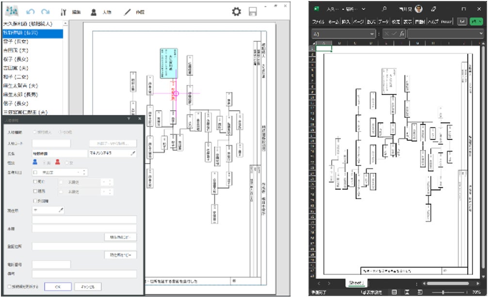 作成した相続関係説明図の外部ファイル対応として、PDFに加えExcel出力に対応。