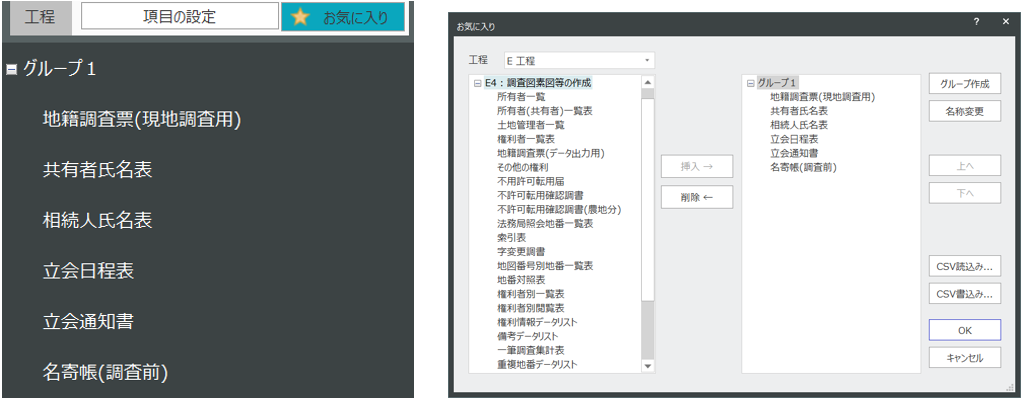 納品成果や使用頻度の高い調書を、「お気に入り帳票」として任意グループに集約が可能。