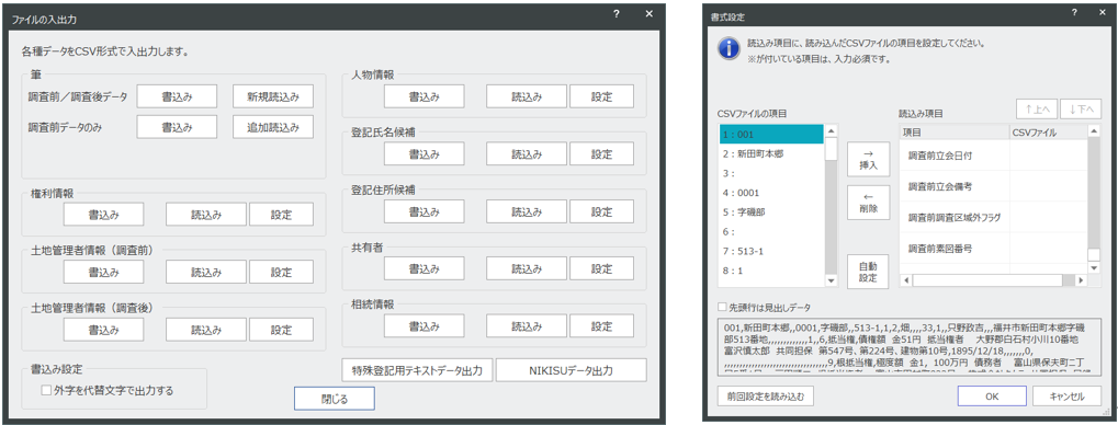 14条地図成果の地積測量図、設定用ファイル(csv)及び図面ファイル(TIF)の作成に対応。