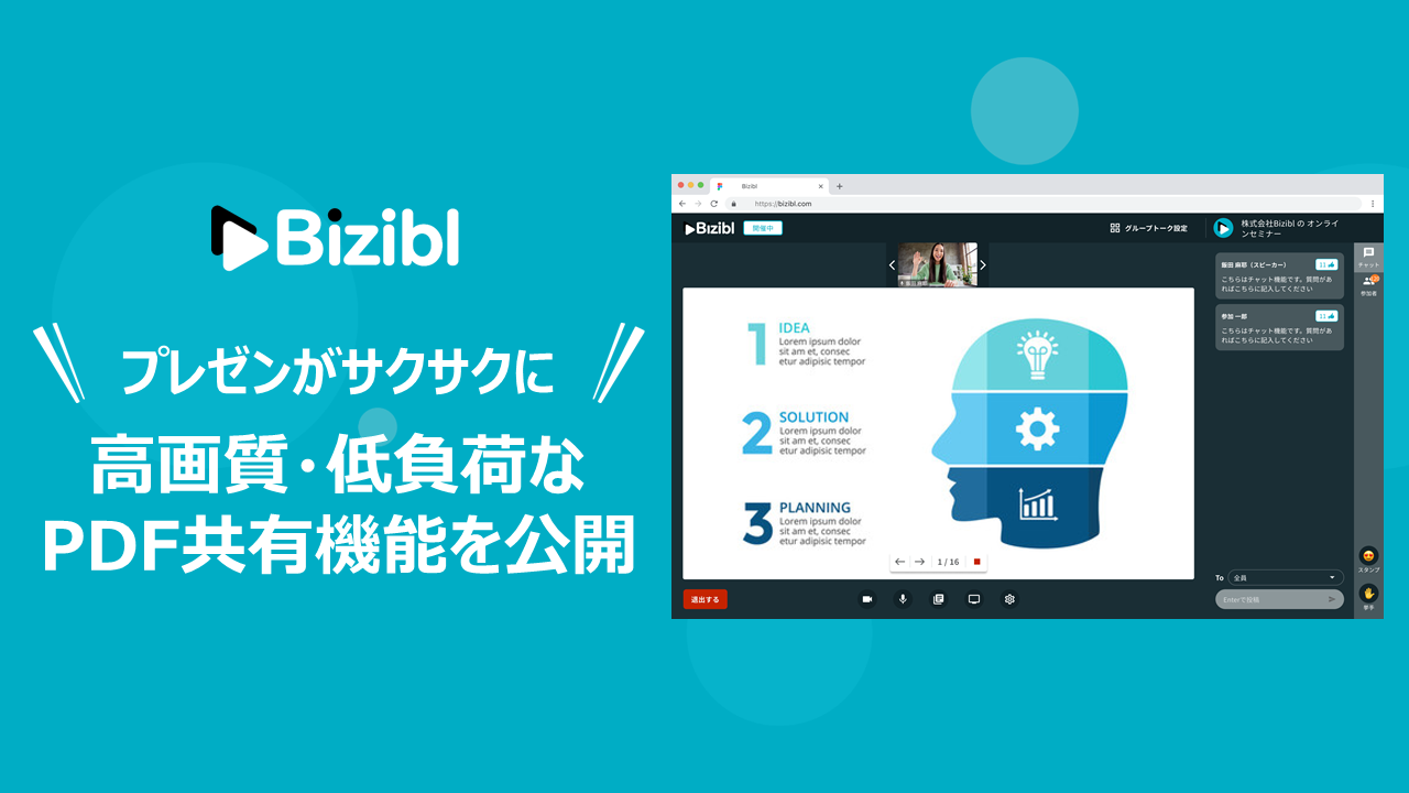 株式会社Bizibl Technologies(本社:大阪市北区、代表取締役:花谷燿平、以下当社)は、開発・提供するオンラインセミナー開催SaaS『Bizibl(ビジブル)』において、高画質・低負荷な資料共有体験を実現する、PDF共有機能を公開いたしました。