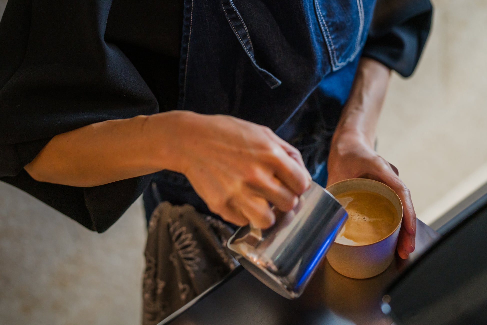 Kimmyで提供するコーヒーは、大崎を拠点にスペシャルティロースターとして支持を集める MAHIRO COFFEE とのコラボレーションによって生まれた特別な浅煎りブレンドです。浅煎りならではの華やかな香りと澄んだ余韻を引き出すことを目指し、香りそのものが“来店の理由”として機能する味設計を採用しています。