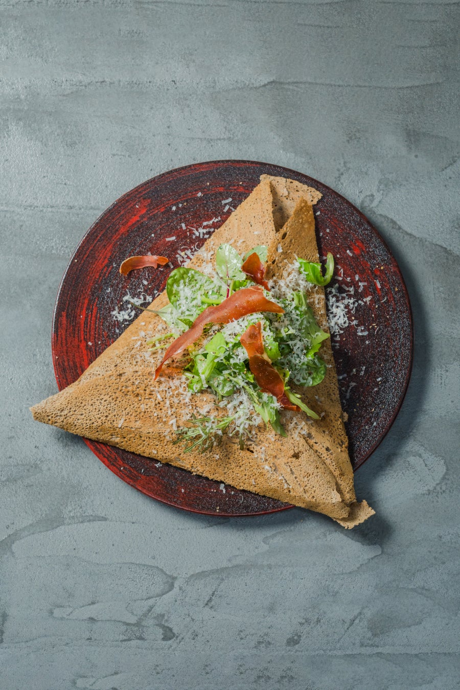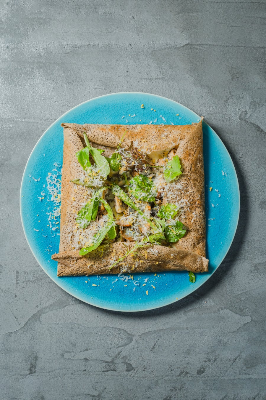 Kimmyのランチタイムを象徴するそば粉ガレットは、“素材そのものの力”を最大限に引き出すための設計から生まれています。福井県産の玄そばを100%使用し、無農薬・有機栽培で育ったそばをガレット専用の石臼で粗挽きにした粉を採用することで、焼き上げた瞬間に立ち上がる圧倒的な香ばしさと、他にはない力強い食感を実現しています。