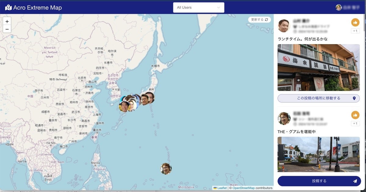 旅行中は、当社オリジナルの位置情報共有サービスを利用して、旅の現状をシェアしてコミュニケーションを取ります。他のチームの状況も見ながら、様々な旅行体験を楽しむことができます。