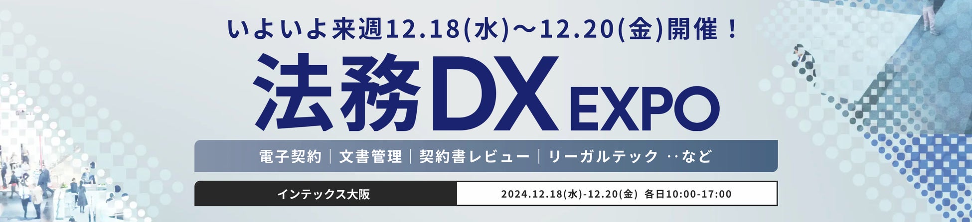 株式会社Legalscape(本社:東京都文京区 代表取締役社長・最高経営責任者 八木田 樹、以下リーガルスケープ)は、2024年12月18日〜20日『法務DX EXPO』にブースを出展いたします。