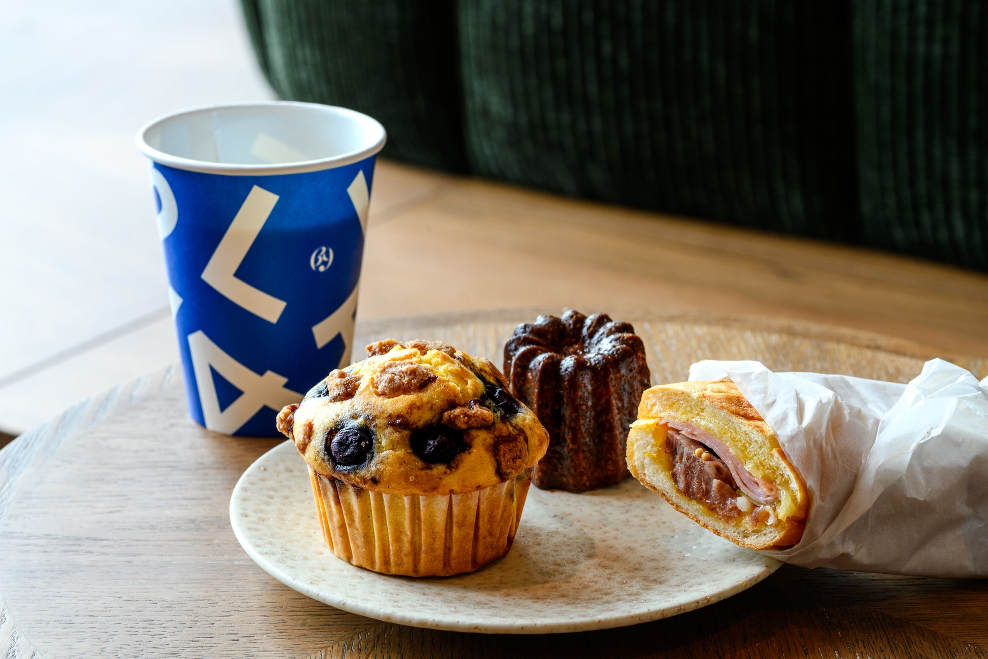 豊富な種類の焼き菓子、サンドウィッチがショーケースに並ぶ設えが印象的なカフェスタンドでは、店内で丁寧に手作りするペストリーとコーヒーをイートイン/To Goでご提供。梅田近辺のワーカーやカジュアルなユーザーにむけて、ほっと一息つけるくつろぎの時間を提供します。