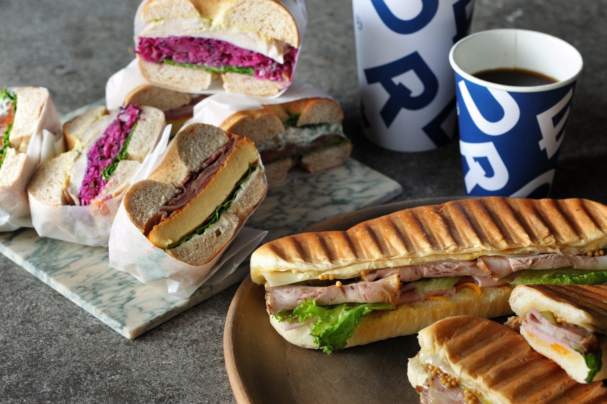 カフェスタンドでは、店内で手作りの種類豊富な焼き菓子やサンドウィッチ、北大路焙煎室(京都)のブルーヤードオリジナルブレンドコーヒーなどこだわりの商品をイートインおよびTo Goでご提供。カフェを利用する感覚で、気軽に立ち寄れるレコードショップでお気に入りのアナログ盤を探す楽しみも演出します。