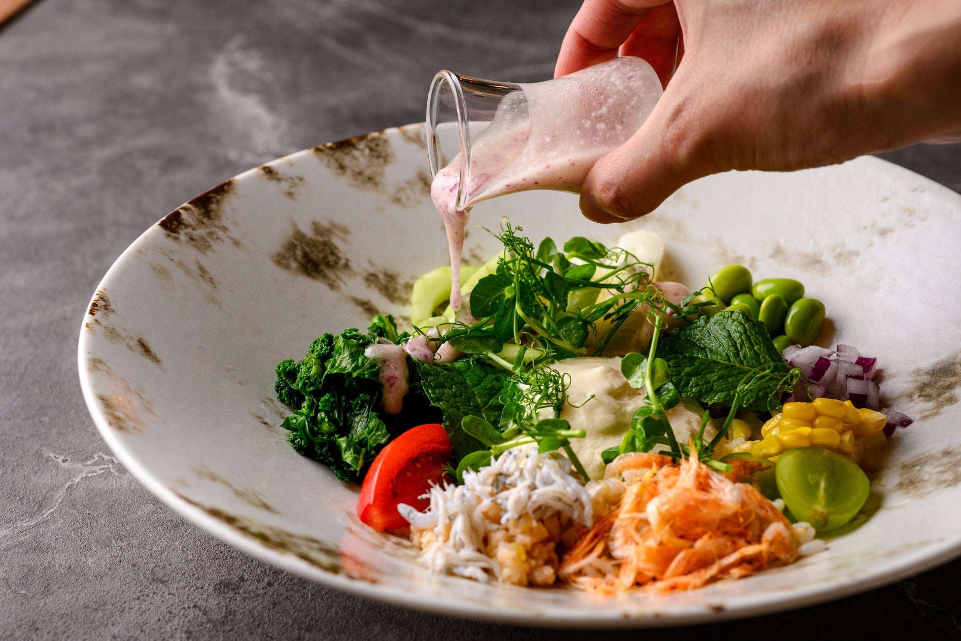 ・リースサラダ ミネラルドレッシングと和芥子サイフォン ¥1,600 (1,760)
