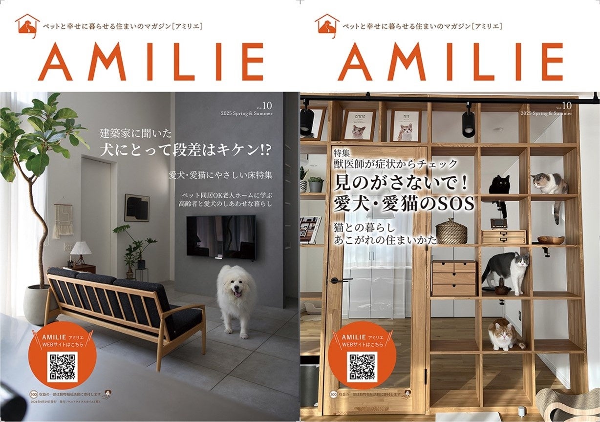 「愛犬家住宅&愛猫家住宅コーディネーター」の資格講座を運営するペットライフスタイル株式会社(本社:東京都港区、代表:中嶋宏一)は、ペットと幸せに暮らせる住まいのマガジン「AMILIE(アミリエ)」の最新号となるVol.10を2025年3月31日(月)に発刊いたしました。
