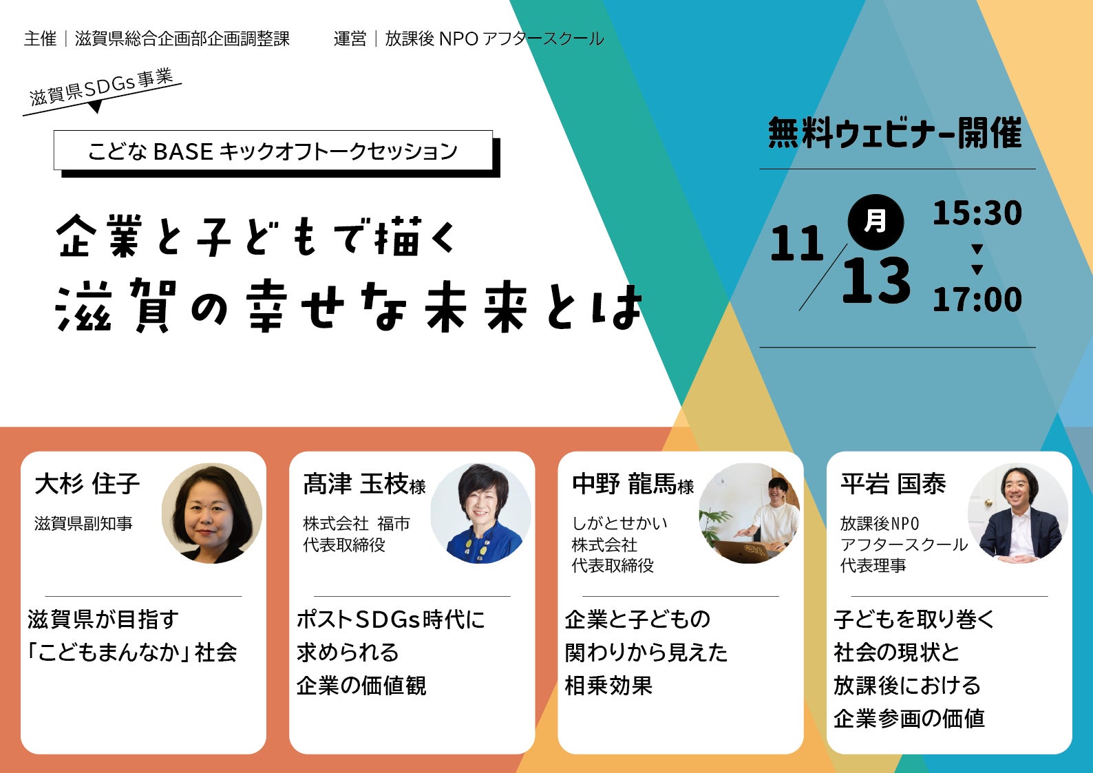 11/13(月)子どもと大人が一緒に滋賀の未来を考える「こどなBASE」キックオフトークセッション開催