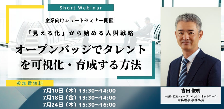 一般財団法人オープンバッジ・ネットワーク(代表理事会長:白井 克彦、本社:東京都新宿区)は、企業向けの無料オンラインショートセミナーを開催することをお知らせします。