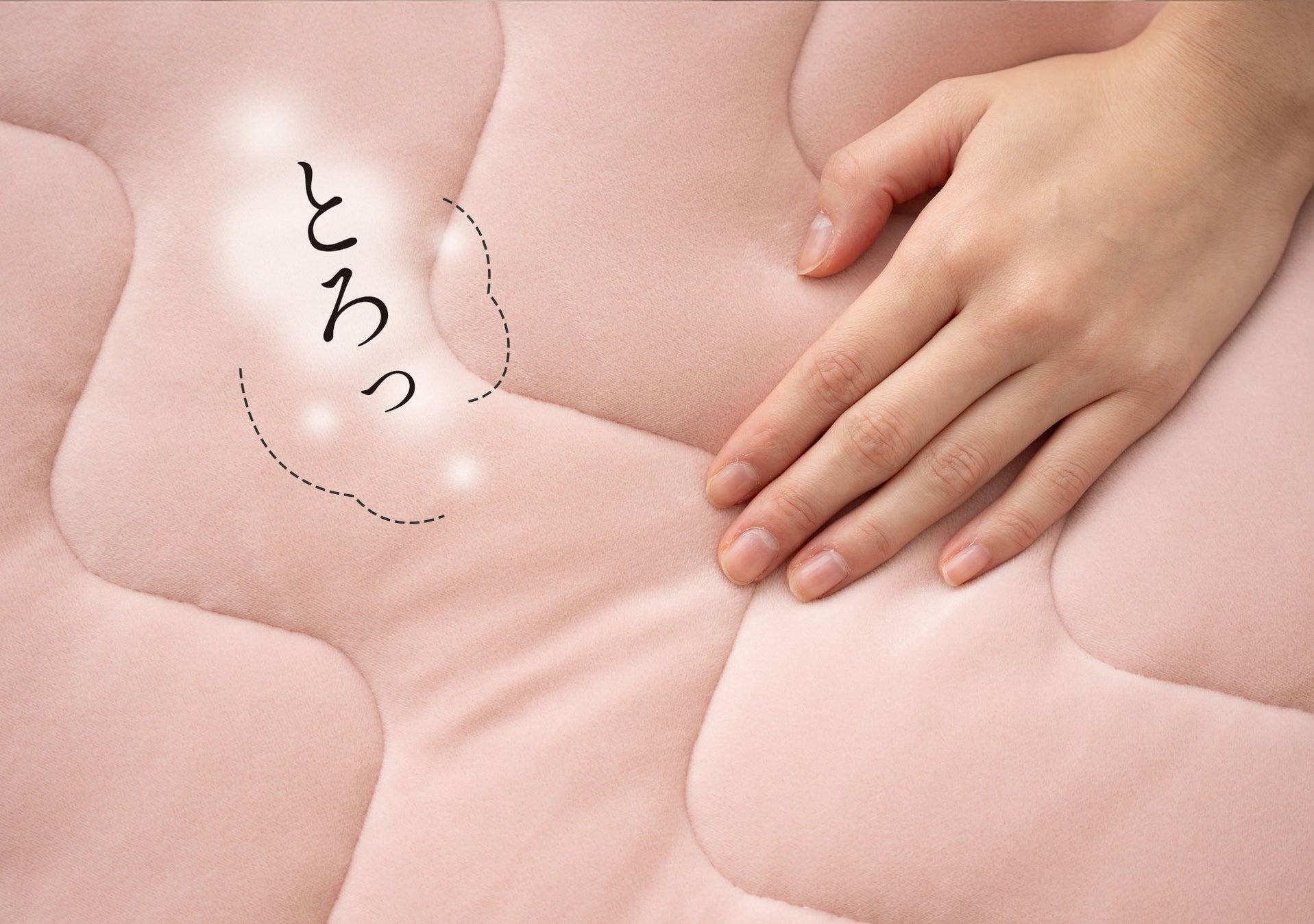 とろけるような、なめらかな質感とまるでマシュマロのようなもちっとした弾力は、ずっと触れていたくなる心地よさです。横になった瞬間から朝まで、とにかく気持ちよくてうっとり。至福の睡眠を実感できます。