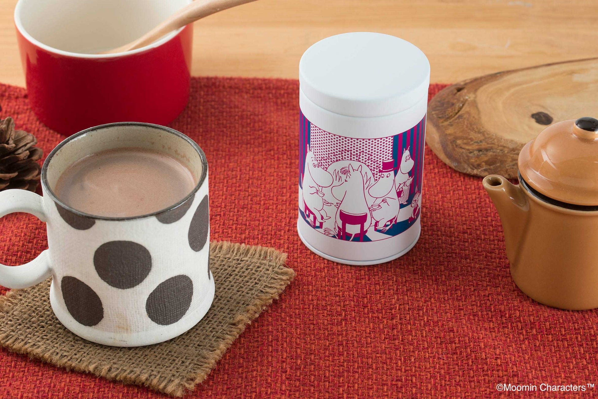 粉末(パウダー)タイプのホットチョコレート。まろやかな味わいで、ほっと温まります。「 Winter festival」デザインの缶入りの、ムーミンバレーパーク、 MOOMIN SHOP オンライン限定販売アイテムです。