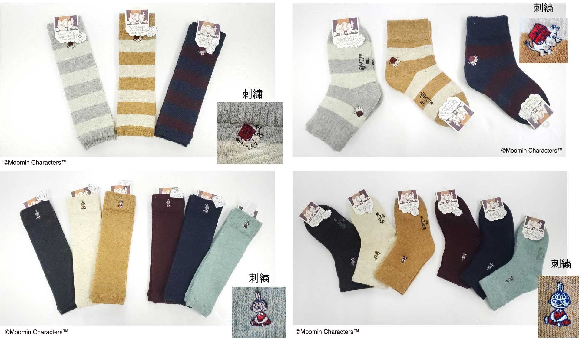 裏起毛があたたかいレッグカバーとホームソックス。ムーミントロールやリトルミイのワンポイント刺しゅう入り。
