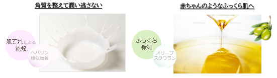 <特徴②>薬用成分「ヘパリン類似物質」が乾燥による肌荒れをうるおいでケア