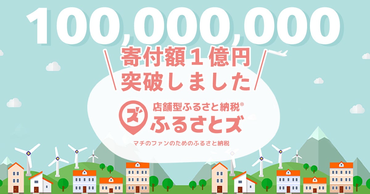 店舗型ふるさと納税(R)『ふるさとズ』は、令和3年11月2日のサービス開始から約1年で寄附総額が1億円を突破しました。