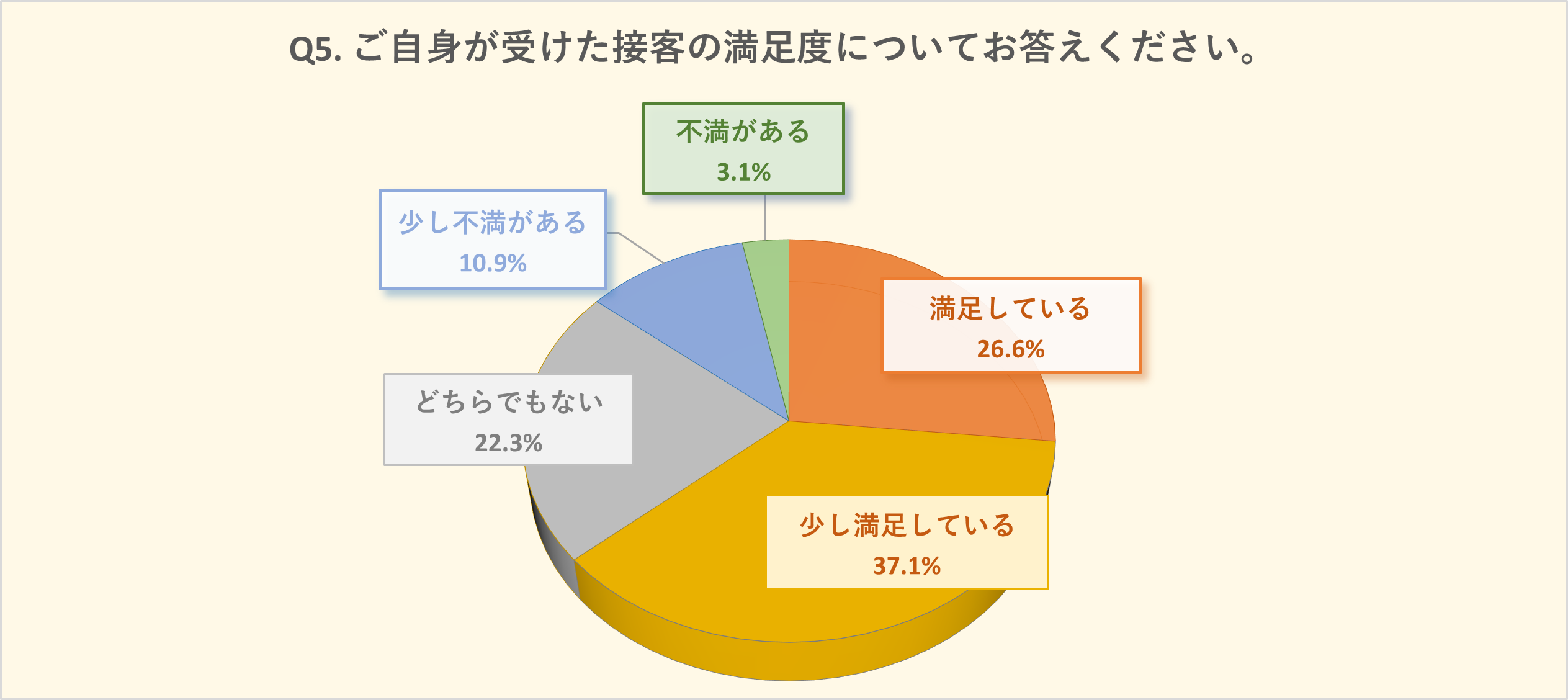 最後に、ご自身の経験から「接客の満足度」について調査いたしました。