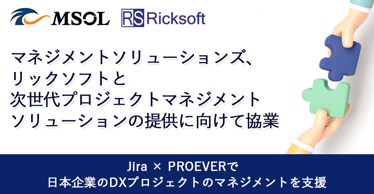 株式会社マネジメントソリューションズ(代表取締役社長 高橋信也、以下:MSOL)は、リックソフト株式会社(代表取締役大貫浩、以下:リックソフト)との間で、プロジェクトマネジメントソフトウェア「PROEVER」の機能を「Jira Software」のユーザーインターフェース(UI)上で連携することとなりました。