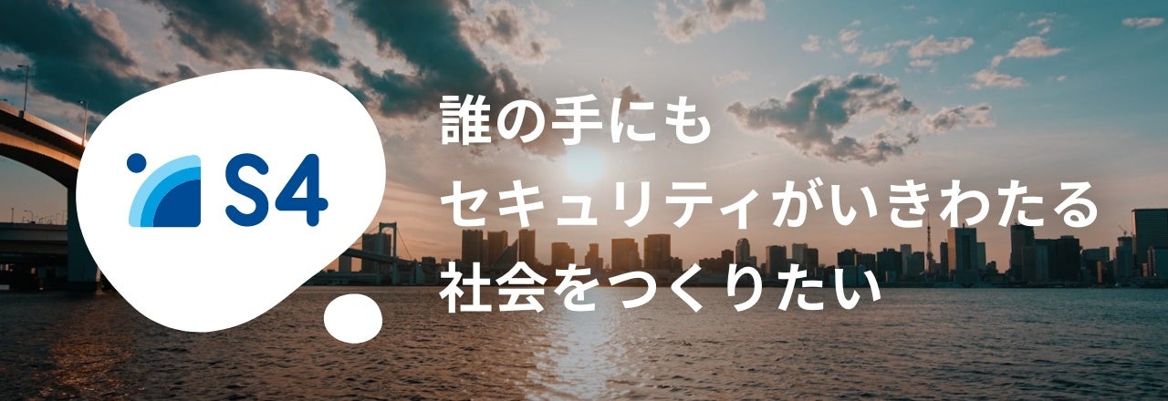 S4(Smile for society, user, vendor, and you.)には豊かな社会を実現し、すべてのステークホルダーを笑顔にしたいという想いが込められています。その想いを軸に、社会課題である「セキュリティ上のサプライチェーンリスク」の解決に取り組んでいます。「誰の手にもセキュリティがいきわたる社会をつくる」ことをミッションにセキュリティ管理システムS4を開発し、セキュリティに困っている中小企業や非営利団体の方々に無償で提供しています。S4プロジェクトの詳細はこちらをご覧ください。