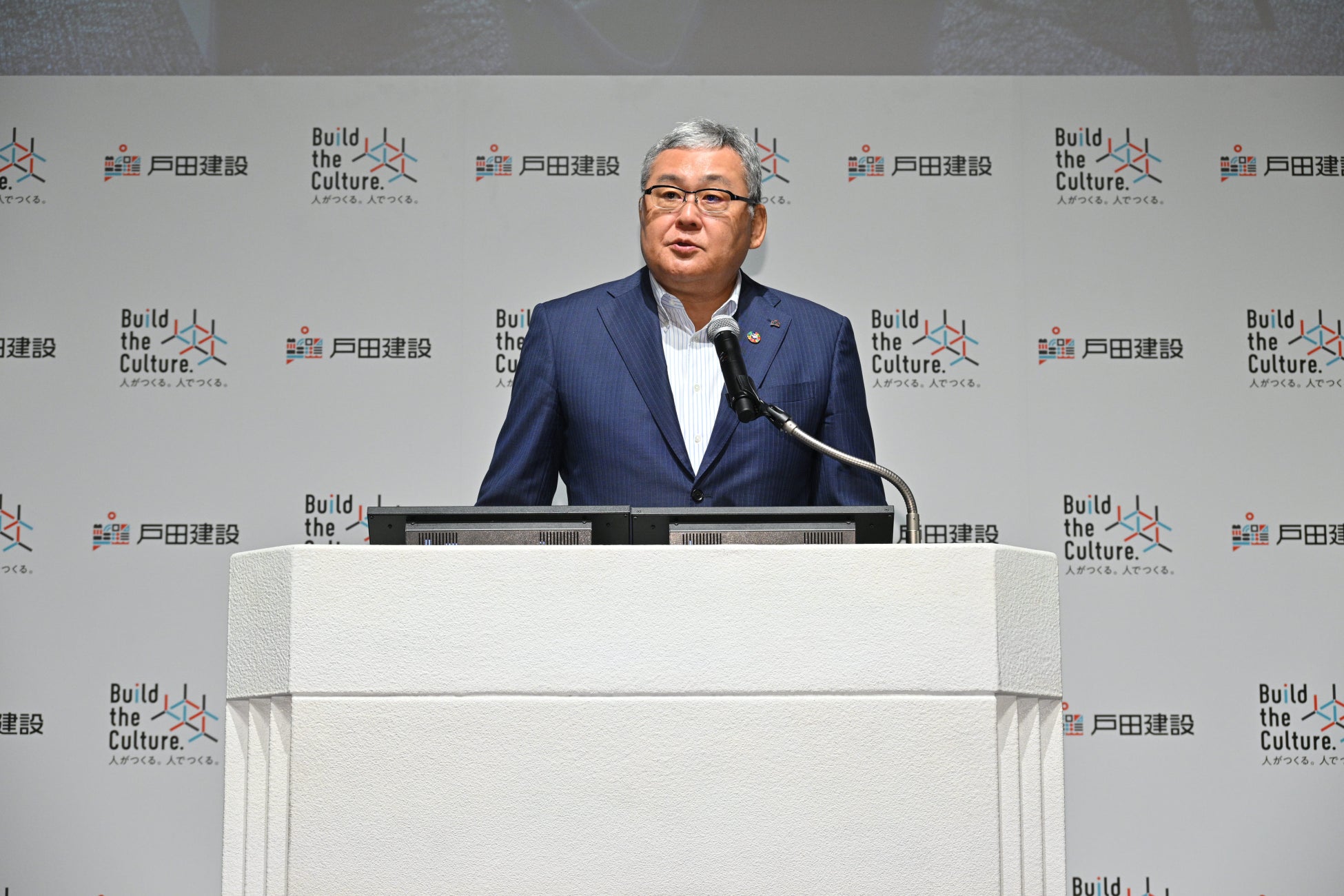 まずは、当社・大谷が登壇。 1881年創業からの歩みをはじめ、当社の強みや技術を活かした様々な挑戦についてプレゼンした後、新たなコミュニケーションについて発表しました。大谷は「“未来へのまなざし”や“人に寄り添う企業姿勢”を表すものとして、当社は、『Build the Culture. 人がつくる。人でつくる。』というブランドスローガンを掲げております」と語りました。それらを体現する新たなコミュニケーションの第一弾として、2024年竣工予定の「TODA BUILDING」を舞台にしたCMを制作。本CMを通して大谷は「我々が、誇りにしている“ものづくりの精神や技術力”、そして“ものづくりの楽しさ”を、未来を担う世代に感じてもらいたい」と語りました。
