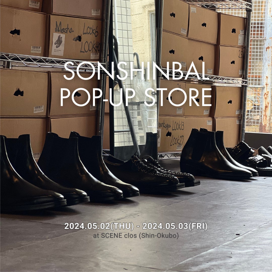 5/2(木)-5/3(金) にSCENE closにて特別価格にてサンプル商品をご試着、そのまま購入できる "SONSHINBAL POP UP STORE"を開催いたします。