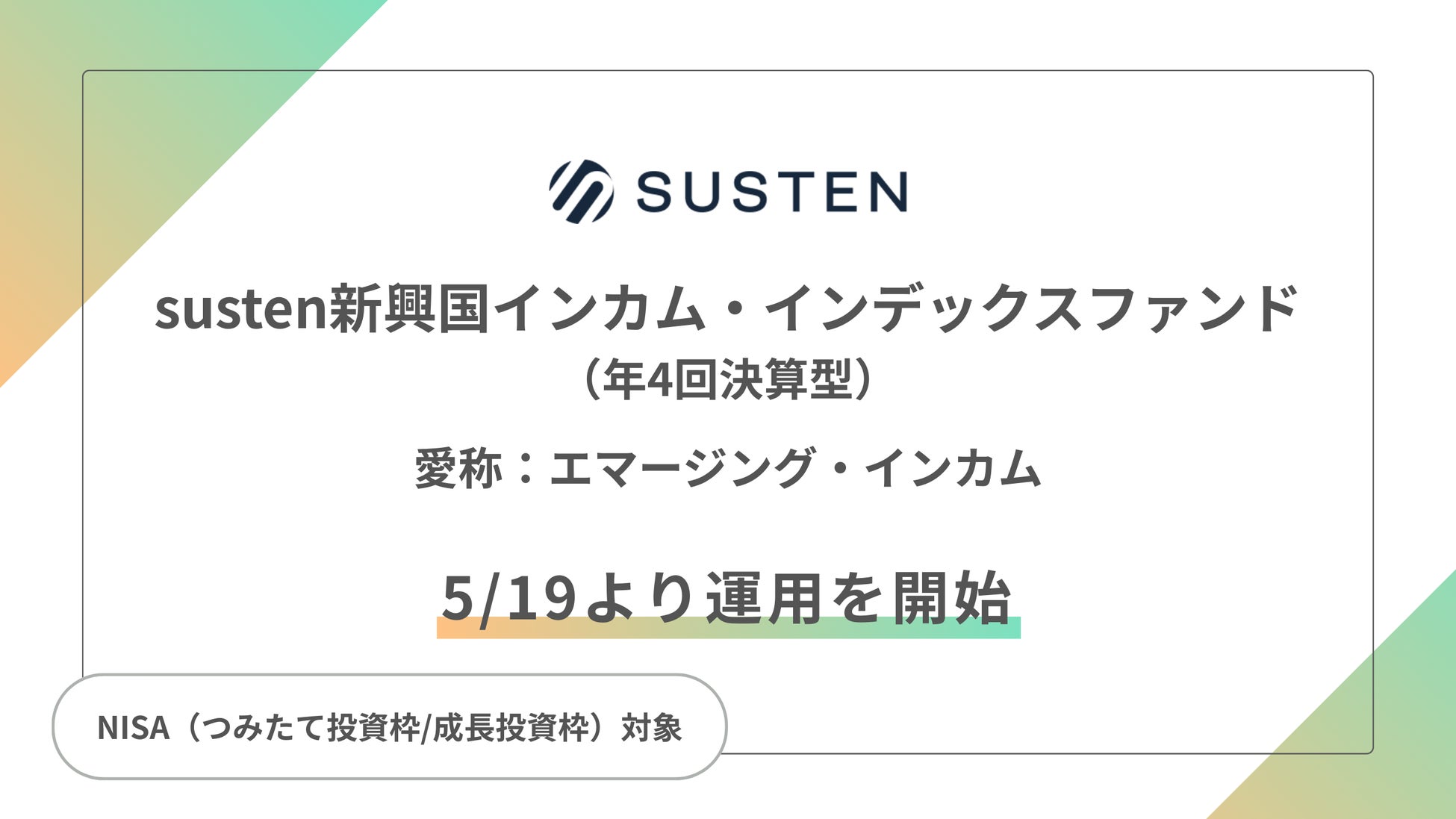 NISA(つみたて投資枠/成長投資枠)対応の公募投資信託『susten新興国インカム・インデックスファンド(年4回決算型)(愛称:エマージング・インカム)』の運用を開始