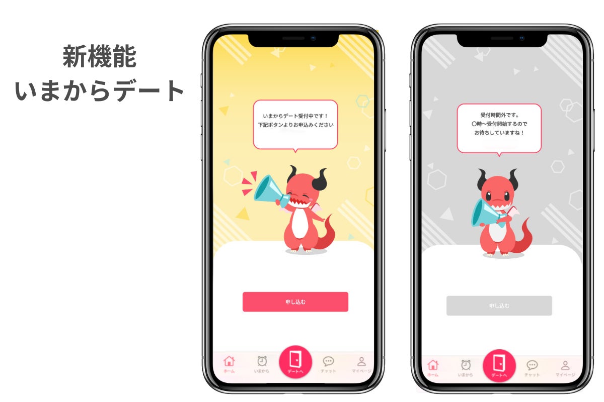 「いまからデート」は、デートしたいと思ったその日に応募できるデート機能です。