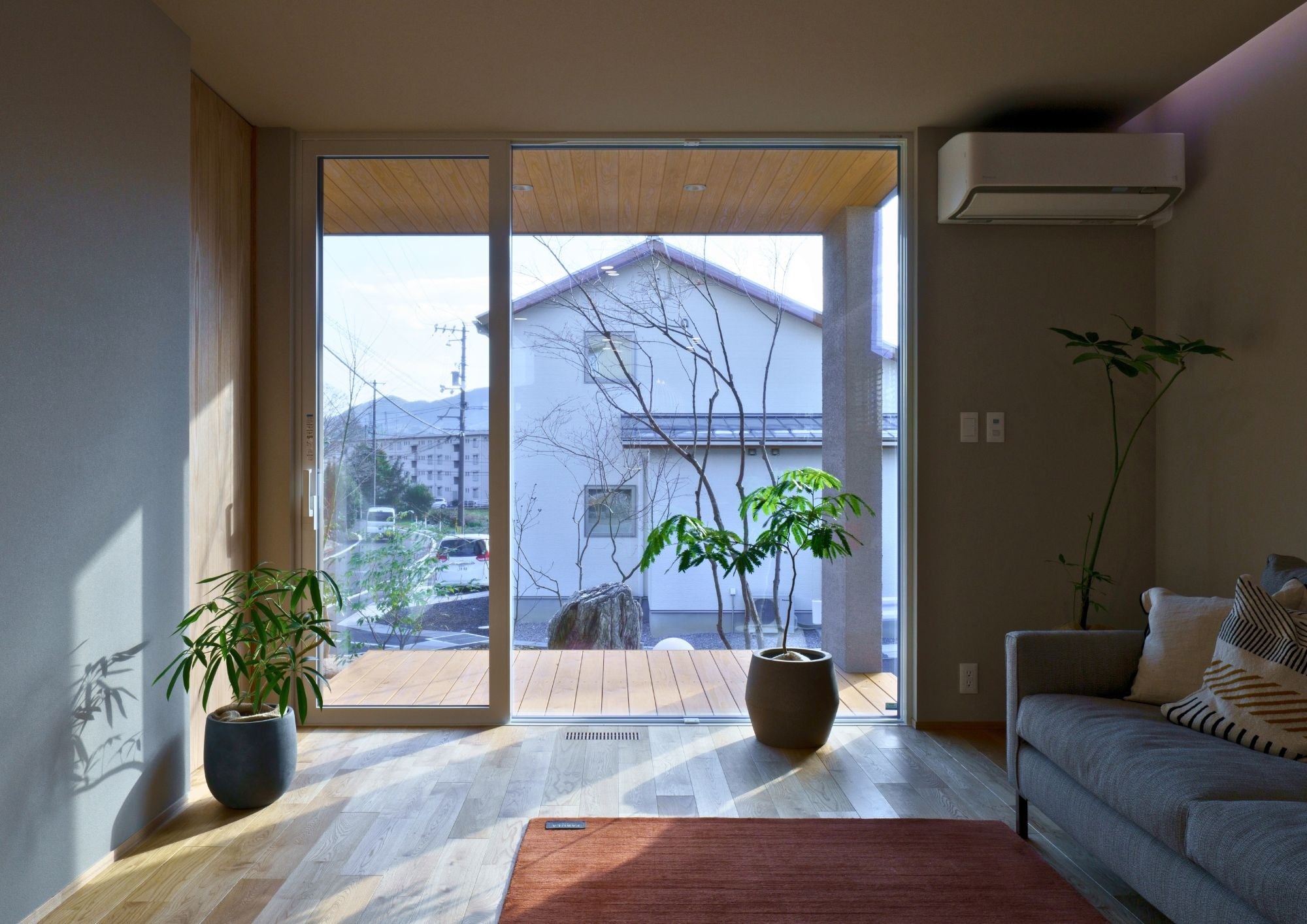 本モデルハウスは、たなべの杜による「自然素材」と「庭とのつながり」を重視した設計に、HOMMAのシステムが融合した2LDKの住まいです。