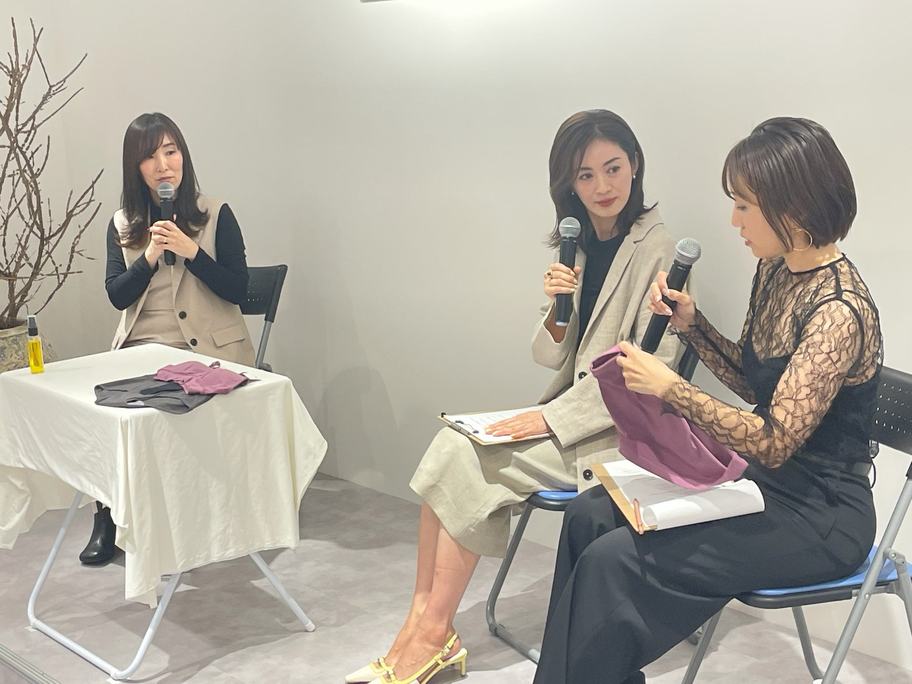 株式会社タカギ(本社:奈良県橿原市、代表取締役社長:髙木麻衣)が運営するインナーウェアブランド「ayame」は、2025年3月8日(土)の国際女性デー、オーガニック・サスティナブルなセレクトショップEthical&SEA(エシカルシー)二子玉川ライズ・ドッグウッドプラザ店(以下、二子玉川店)と合同でイベントを開催。ゲストにモデルの高垣麗子さんを迎え、Ethical&SEA二子玉川店オーナー藤井桃子さんとayameブランドプロデューサー髙木麻衣の3名でトークショーを実施しました。