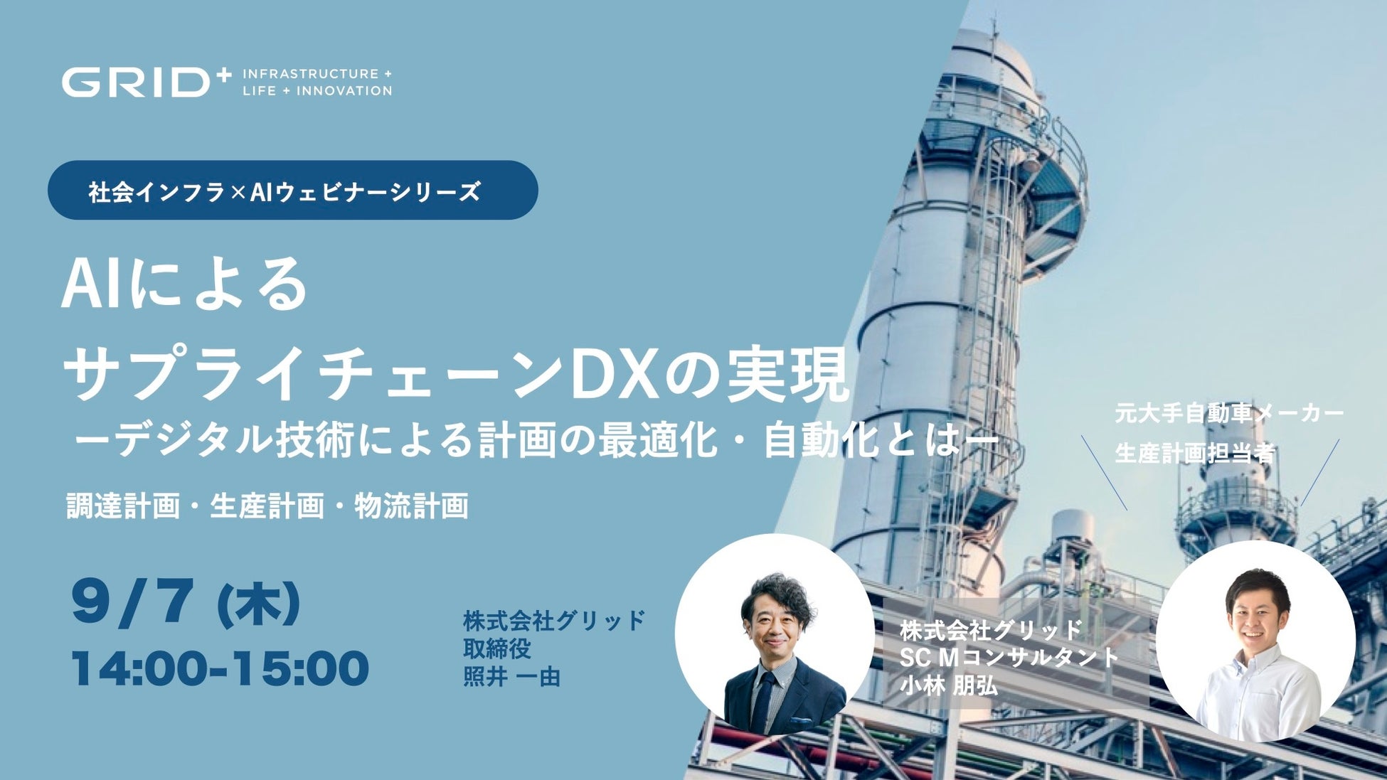 株式会社グリッドは、「AIによるサプライチェーンDXの実現」無料ウェビナーを2023年9月7日(木)に開催することをお知らせ致します。