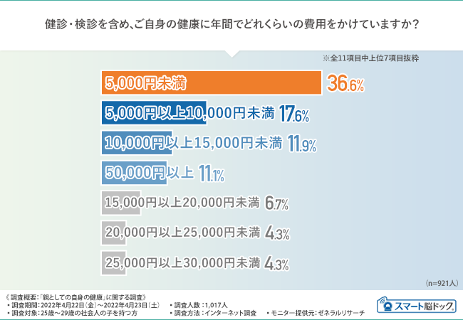 【子どもの健康を優先するのが親心】20代後半のお子さんを持つ親御さんの半数が、「自身の健康のための費用は年間1万円未満」という実情