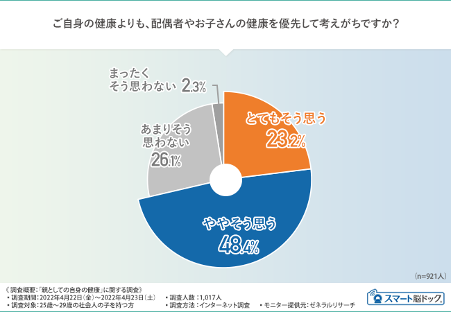では、20代後半のお子さんを持つ親御さんは、ご自身の健康に関してどのようにお考えなのでしょうか。
