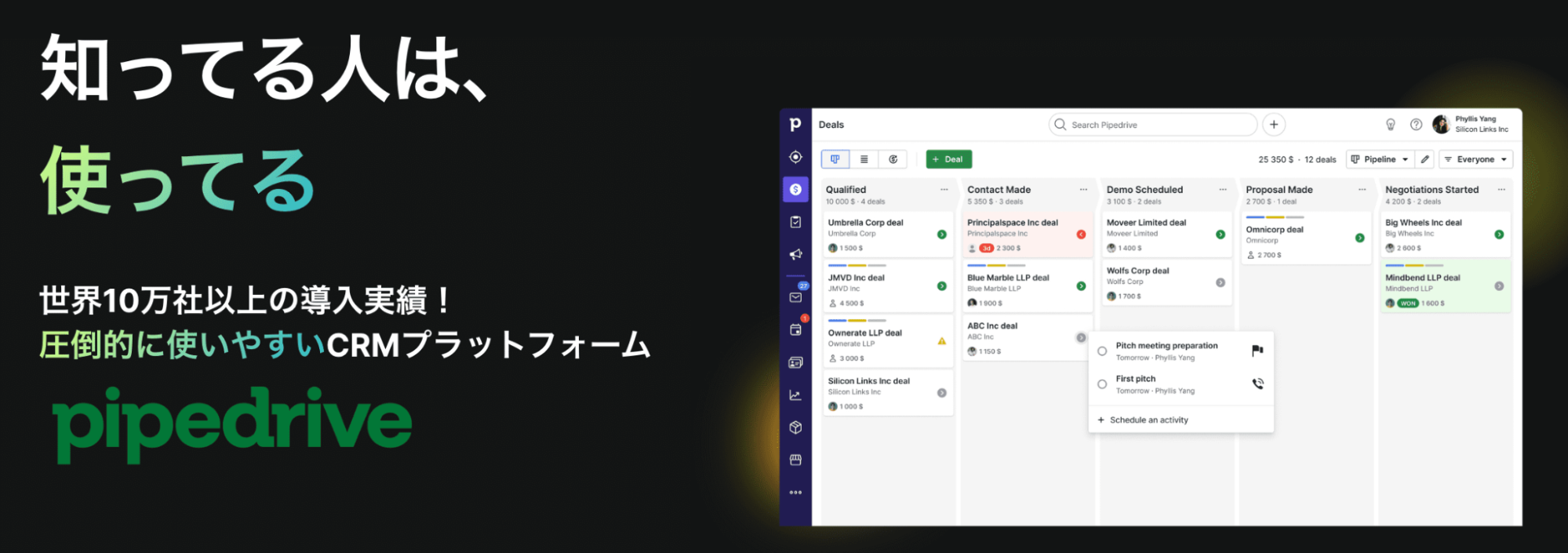 CRMプラットフォーム「Pipedrive」:https://www.pipedrive.merinc.co.jp/