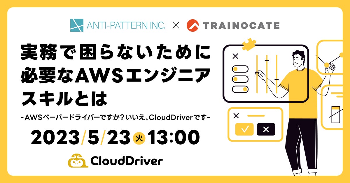 【共催セミナー】5/23(火)13:00開催『実務で困らないために必要なAWSエンジニアスキルとは ~AWSペーパードライバーですか?いいえ、CloudDriverです~』