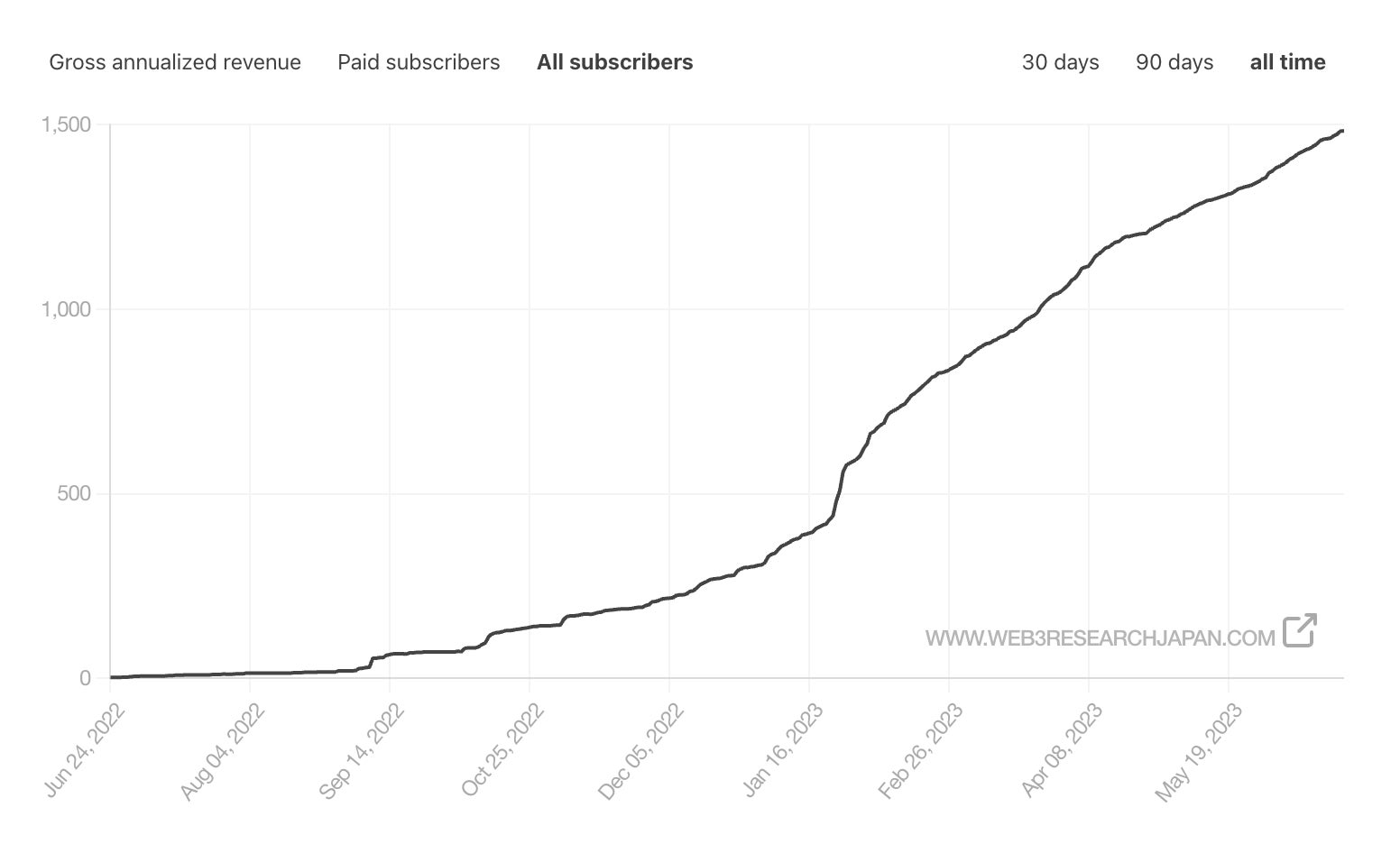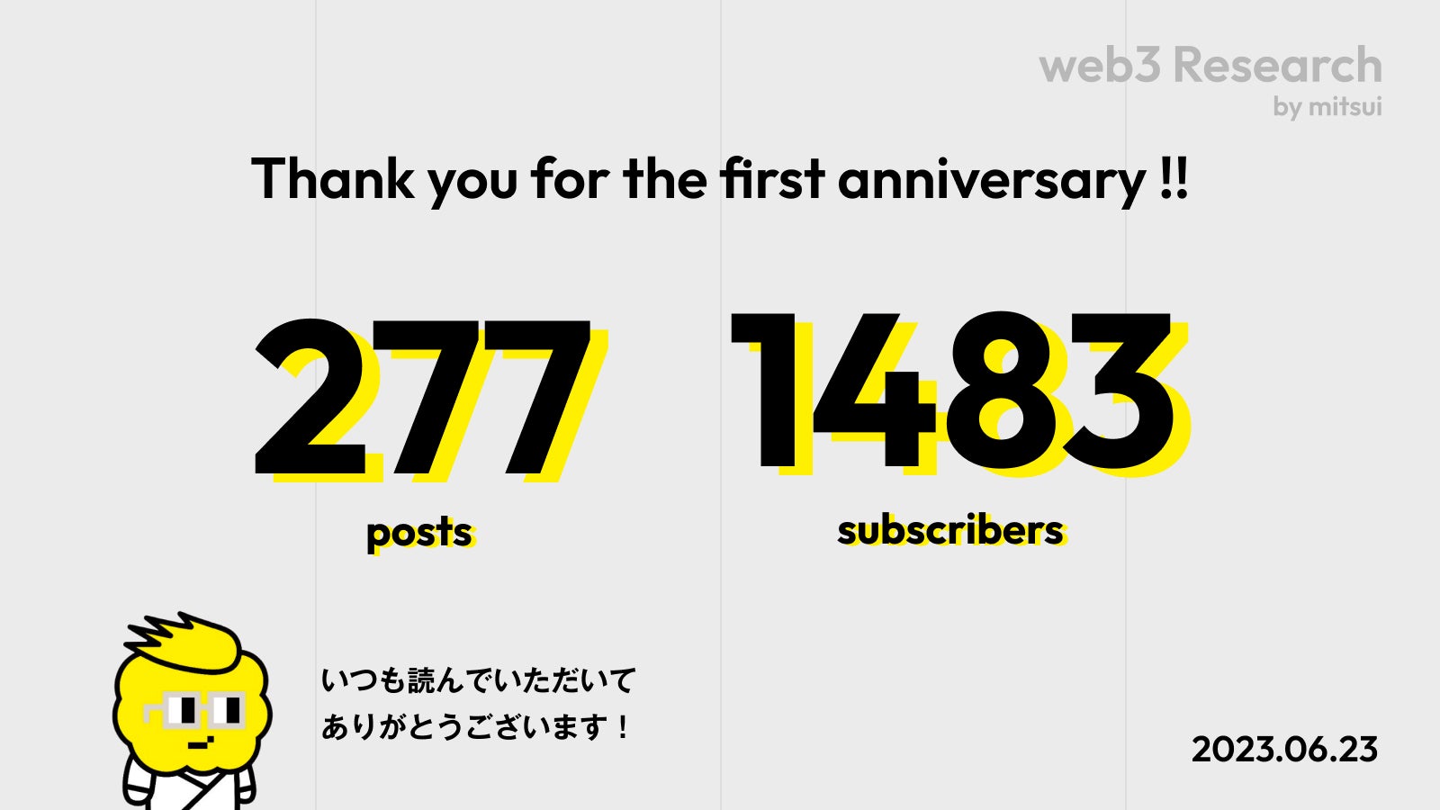 そんな「web3 Research JAPAN」が運営開始から1年が経過しました。過去1年間で合計「277記事」が公開され、累計「1,483名」がメールアドレスを購読しました。
