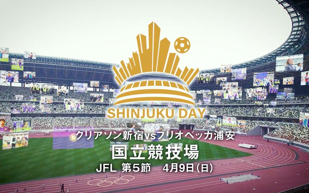 4月9日に国立競技場で行われる JFL 第5節 クリアソン新宿 vs ブリオベッカ浦安のプロモーションムービーが、新宿の百貨店を中心に10ヶ所以上のサイネージで放映決定。昨年は16,000人超の入場者数でJFLの歴代最多記録を更新。新宿区にある国立競技場で、新宿のサッカークラブが開催する試合を、共に街を盛り上げる企業に垣根を超えてバックアップしていただきます。