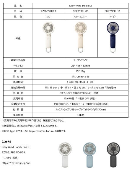 モバイルファンシリーズ新商品「Silky Wind Mobile 3(シルキーウインドモバイルスリー)」を4月中旬より発売いたします。