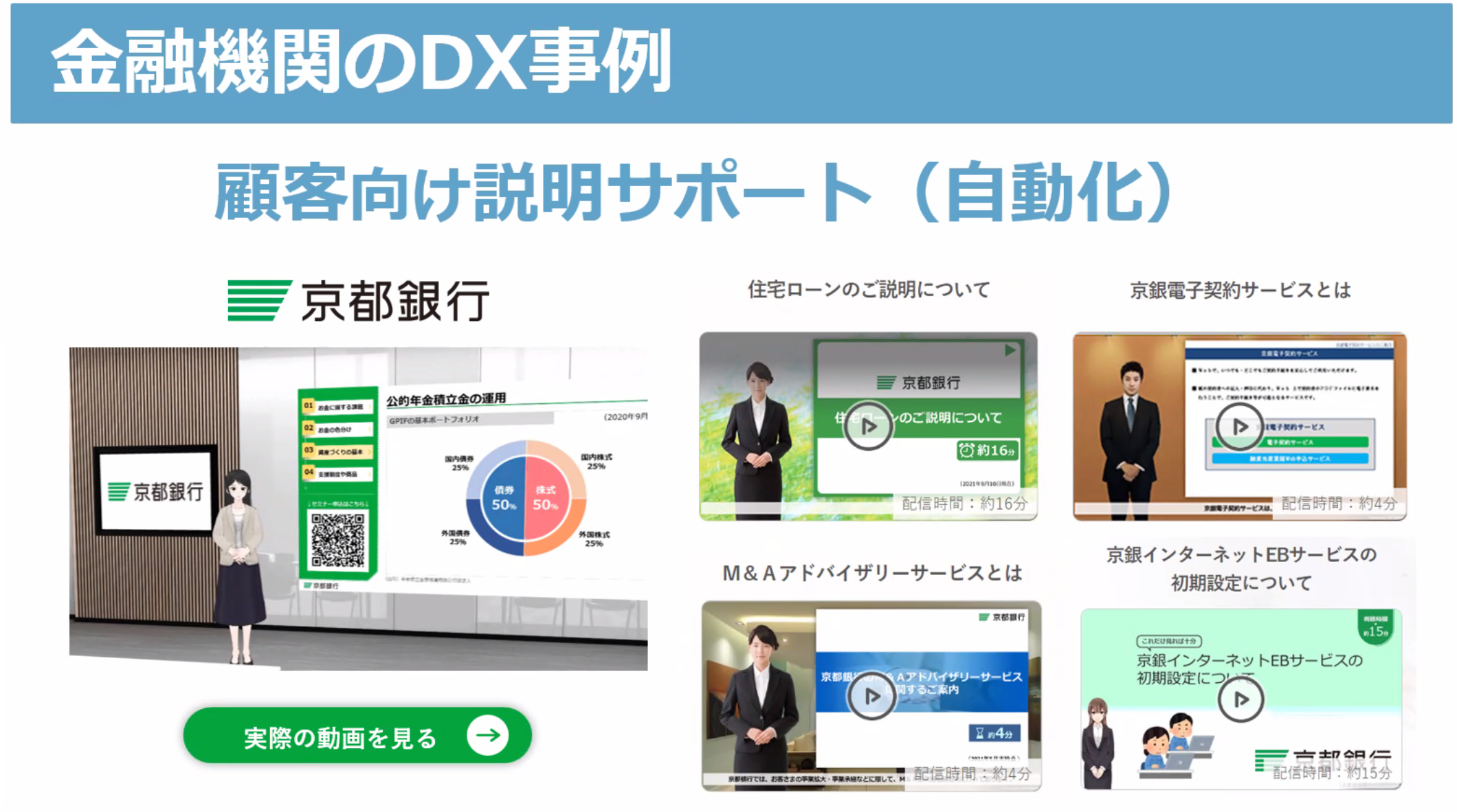 2体のアバターが対話するロープレを通じて「聞いて・話す」実践的な営業教育を実現!顧客満足度が上がるNISAや住宅ローンの提案話法、法人営業の商談話法など売上改善型動画を内製化できるソリューションを提供。