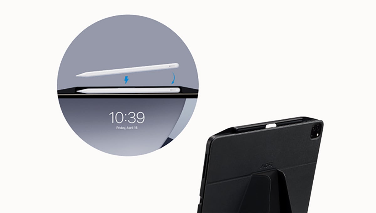 Apple Pencil専用スロット付きでお出かけ先でもペンの紛失を防ぎます。