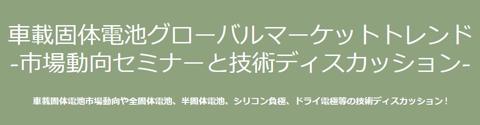 電池開発の第一人者をお迎えしての技術ディスカッションもあります!「車載固体電池グローバルマーケットトレンド~市場動向セミナーと技術ディスカッション~」開催